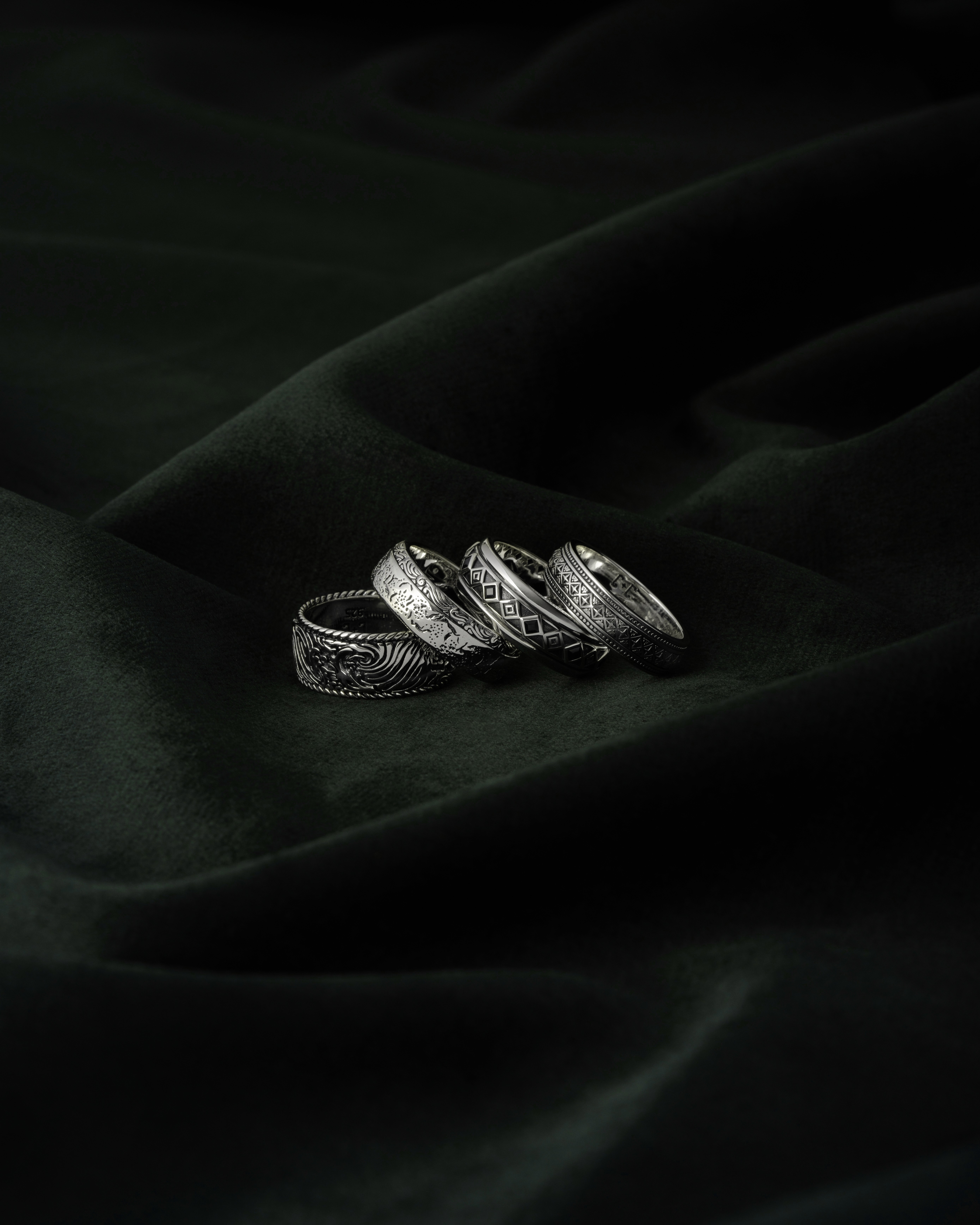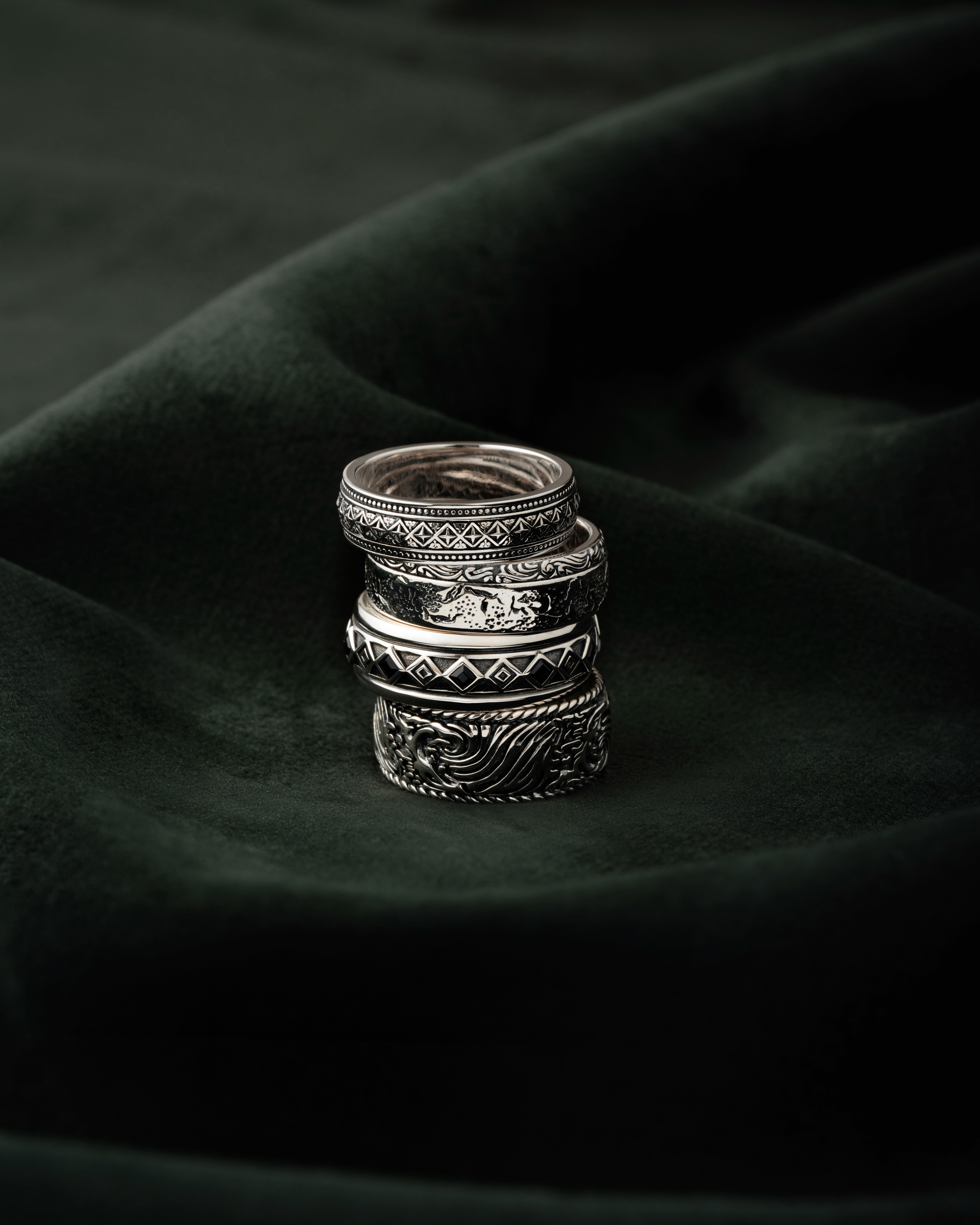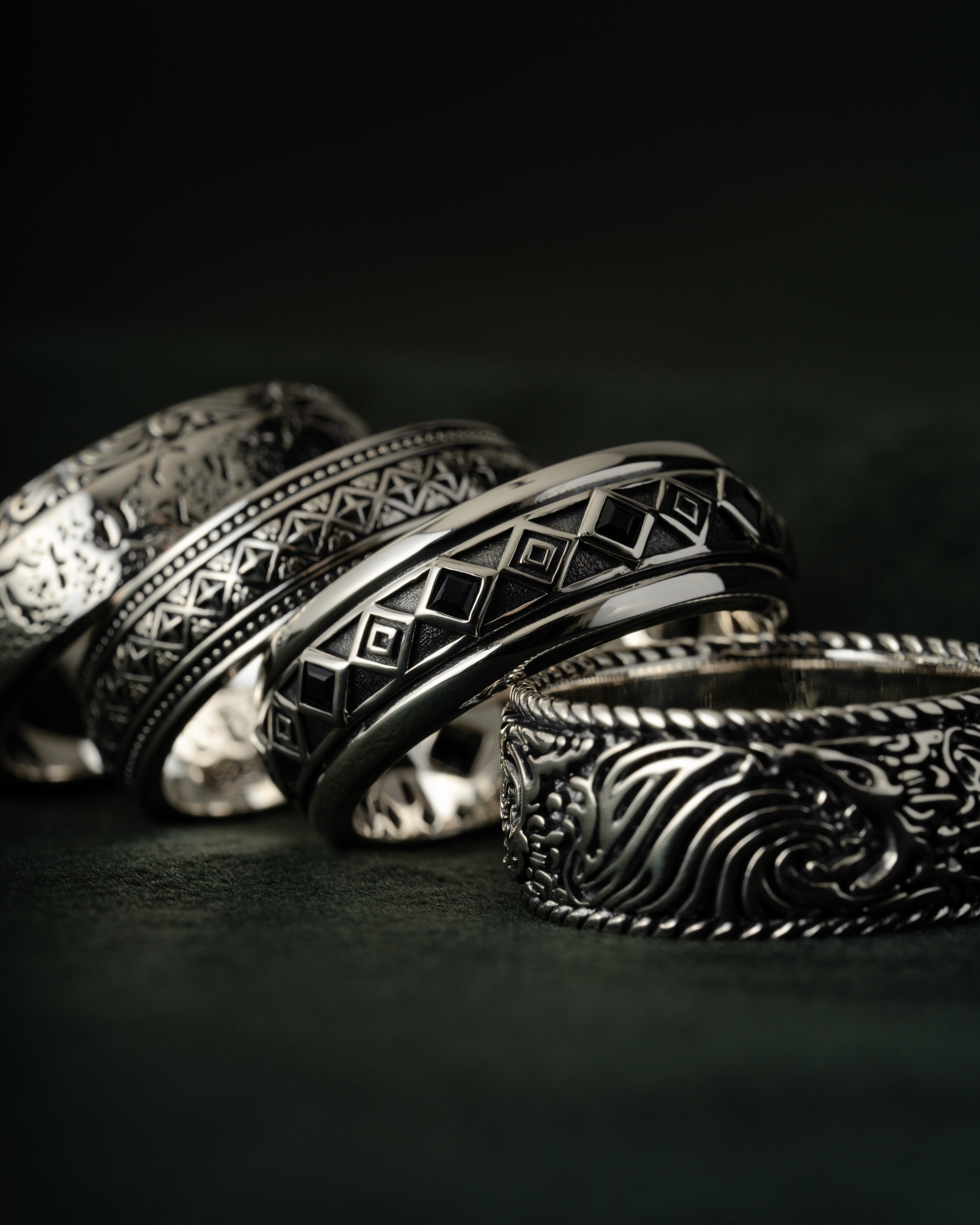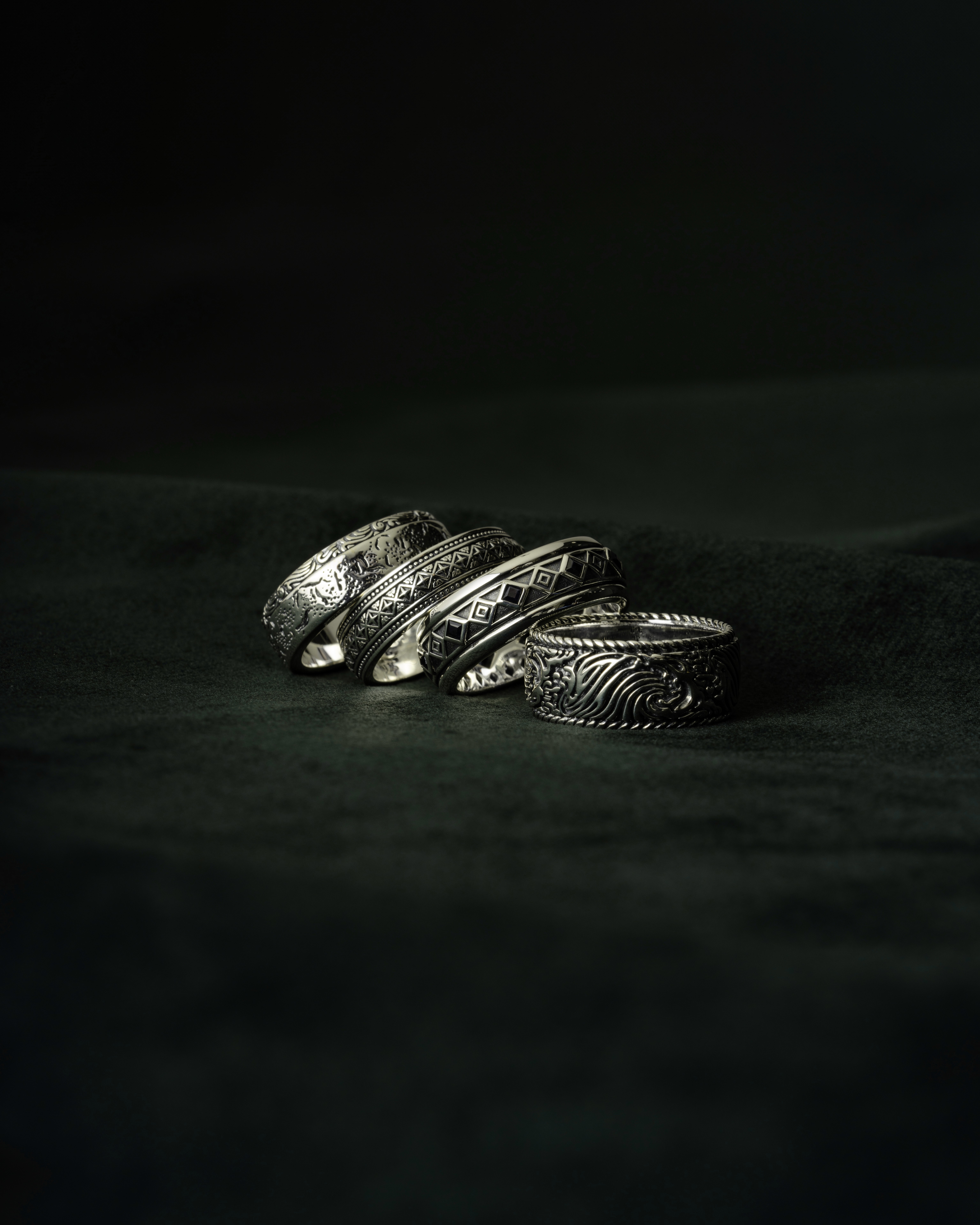 A luxury jewellery photography series for Clocks and Colours, highlighting texture, form, and intricate detailing through controlled lighting and considered composition. Produced for use across the brand’s website.