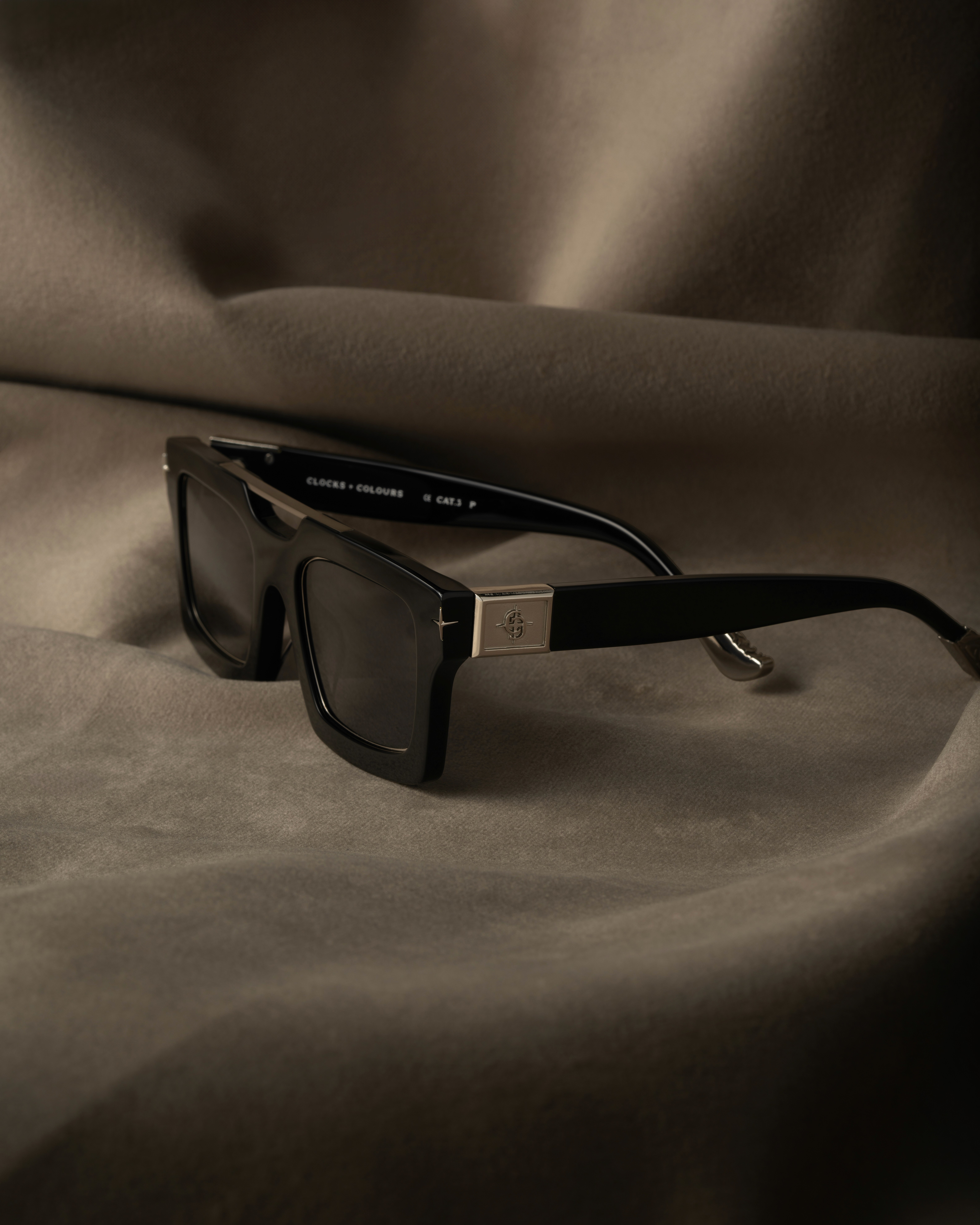 A high-end product photography series for Clocks and Colours, capturing sunglasses and lifestyle accessories through controlled lighting and considered composition to emphasise craftsmanship and design.